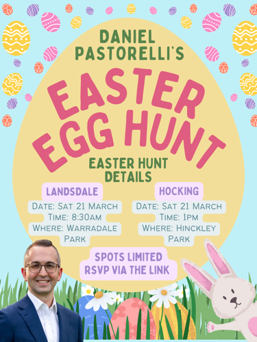 This event is open to children under 12 who live in the Landsdale electorate — including Marangaroo, Madeley, Darch, Landsdale, Pearsall and Hocking.